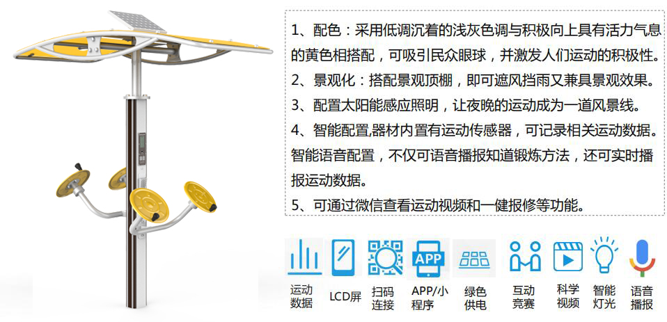 KY.COM-开云(中国)全民健身产品涵盖健身路径、运动场馆、篮乒气羽排等产品,分为多个系列,先进的制造工艺、严苛的质量检测,确保产品性能优良、品质安全可靠,让运动简单科学。并将全民健身器材(户外路径器材、体育场馆等产品)进行智能化升级和互联,实现全人群覆盖、全场景智能,让运动赞美生活。