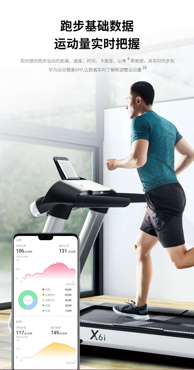 KY.COM-开云(中国)跑步机-X6心率跑步机,可根据用户运动是实时心率,跑步机自动调节跑步速度、坡度等进行运动强度的调节,更科学;X6i华为版跑步机,可以通过连接华为运动健康APP,监测多种类型跑步数据。欢迎来电咨询~