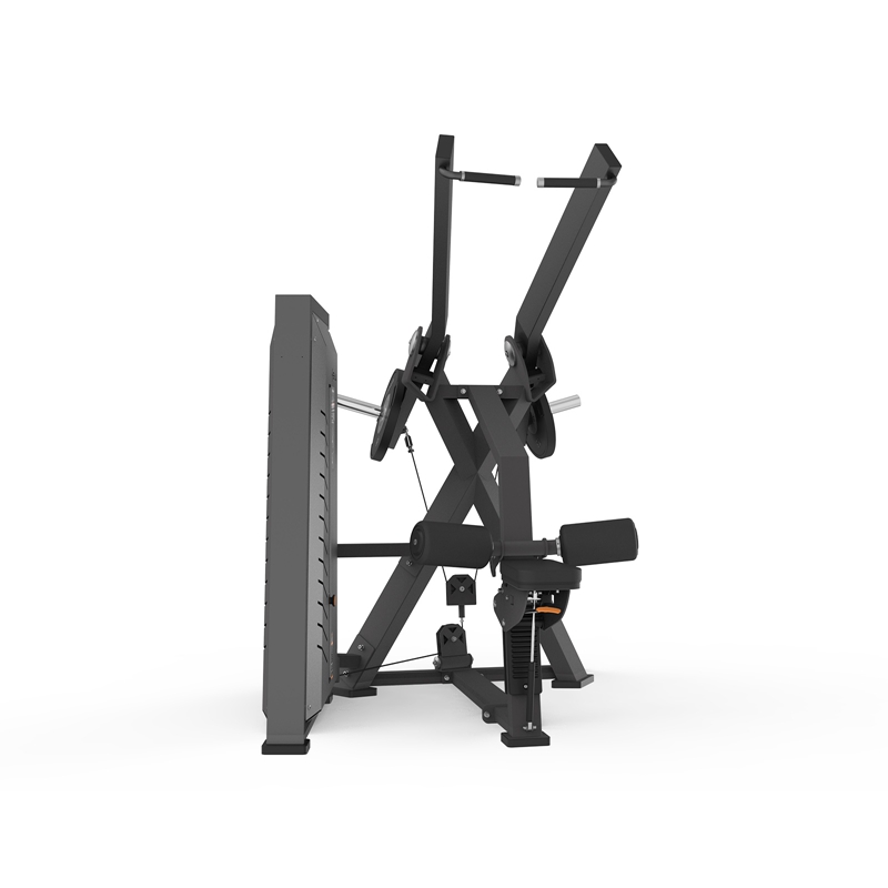 1、分离式下拉运动轨迹,可以更加有效的锻炼背部肌肉的宽度;