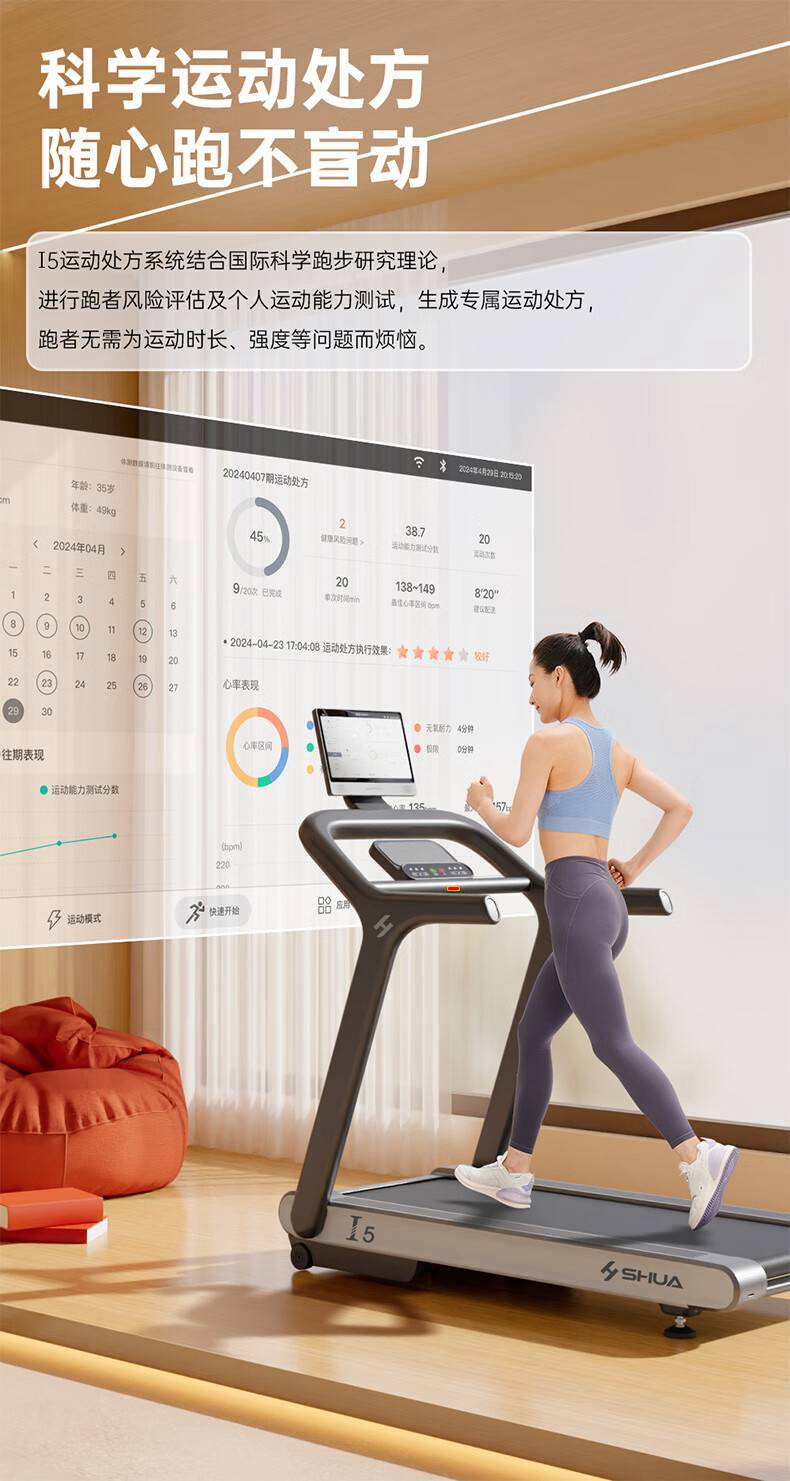 KY.COM-开云(中国)SH-T580T I5跑步机,科学运动处方,随心跑不盲动,可根据个人运动处方心率区间及跑者的实时心率情况,自动调节速度或坡度,犹如你的专属“配速员”让你随“心”而跑无负担。