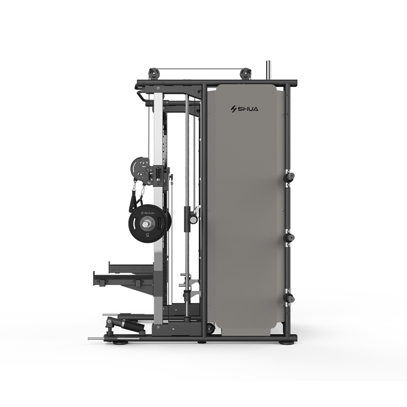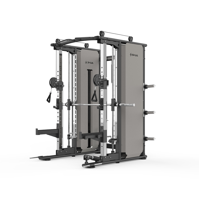史密斯多功能训练器SH-G6825是一款性价比高、设计紧凑、占地小的健身设备,集成了史密斯机、力量训练架、小飞鸟等功能,配备多种训练配件,适合不同水平用户,满足全身训练需求。多效合一,全能装备,开启全身力量特训之旅,几百种训练方式任意选择,媲美半个健身房。