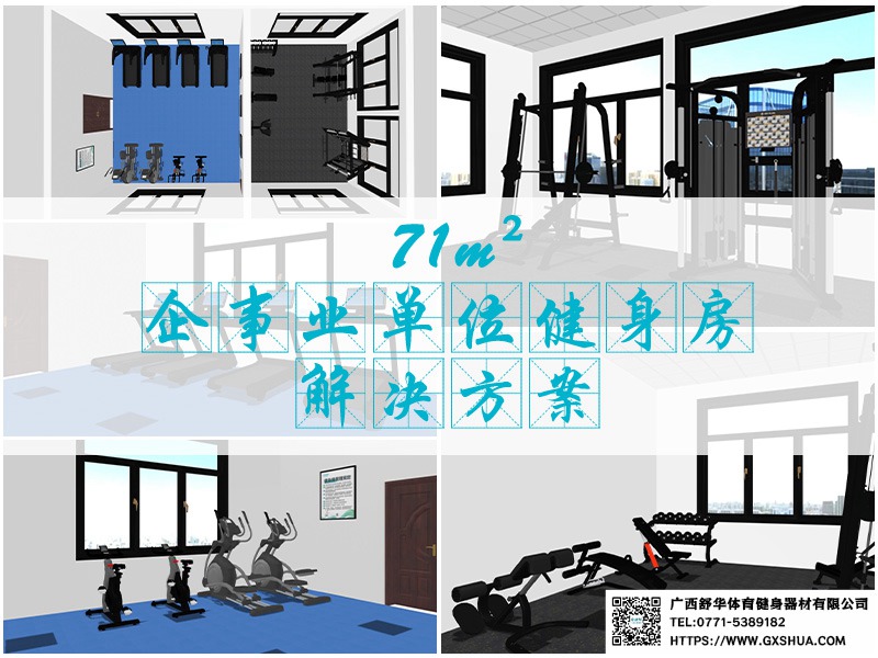 此方案要求面积小于71m²,适用于企事业单位、酒店会所、楼盘社区、工作室、学校等健身场所,能满10-15人同时健身使用。(方案根据场地空间大小、预算、产品需求等进行配置仅为启发性参考)