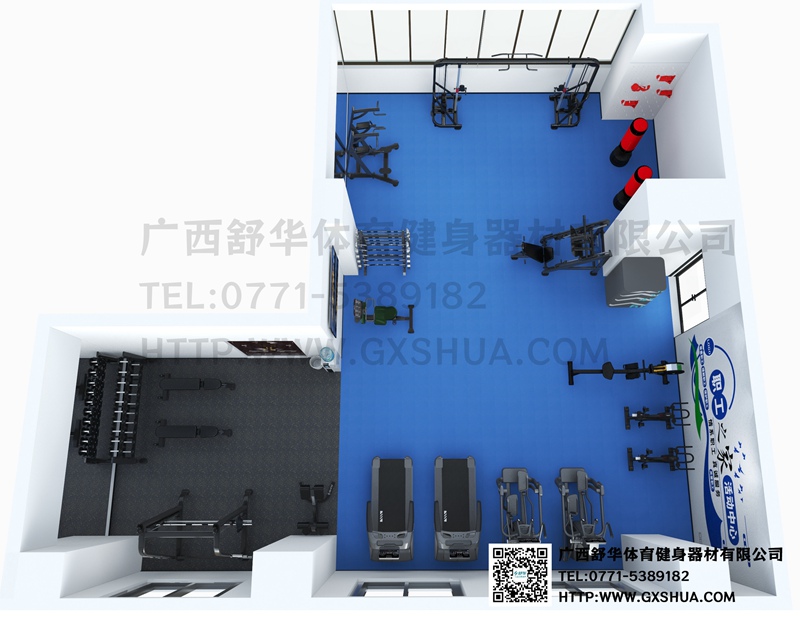 此方案要求面积小于110m²,适用于企事业单位、酒店会所、楼盘社区、学校、商用等健身场所,能满20-30人同时健身使用。(方案根据场地空间大小、预算、产品需求等进行配置仅为启发性参考)