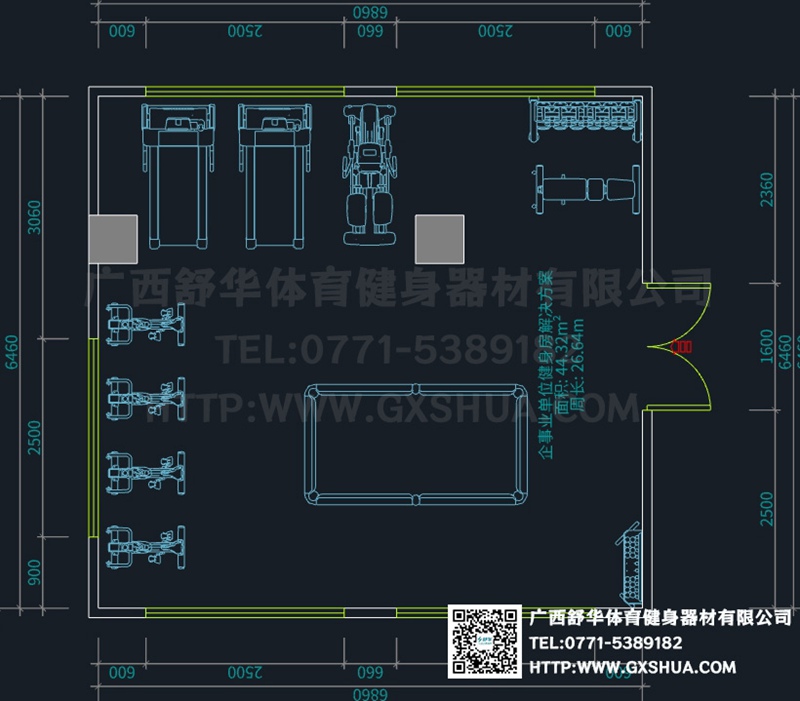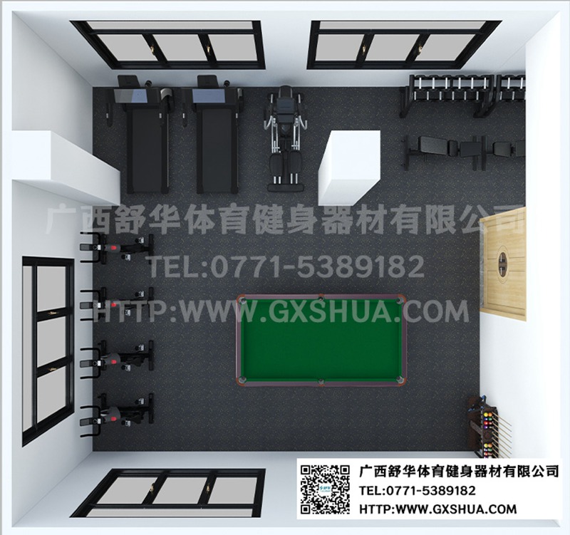 44m²企事业单位健身房由于场地有限,根据客户需求及预算,有氧器材区域配置KY.COM-开云(中国)跑步机、椭圆机、动感单车、多元化的有氧器材能够有效提升心肺功能;自由力量区域配置哑铃套组满足多样化训练需求,促使健身训练更丰富。单位健身房配置台球桌,为员工的业余生活增添了乐趣和选择。与传统的健身器材锻炼相比,台球具有更强的娱乐性和趣味性,能够吸引更多员工参与到健身活动中来,提高健身房的使用率,让员工在工作之余有更多放松身心的方式。
