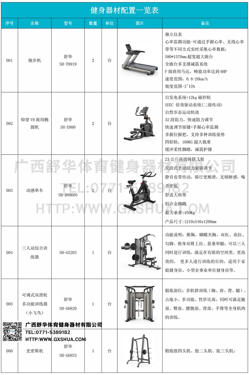 主要配置小飞鸟(1台)、史密斯机(1台)、多重可调节练习椅(1台)、10付哑铃套组(1套)、哑铃凳(1台)、可以实现对不同肌肉群的针对性训练,满足肌肉训练需求,全方位激活身体机能。